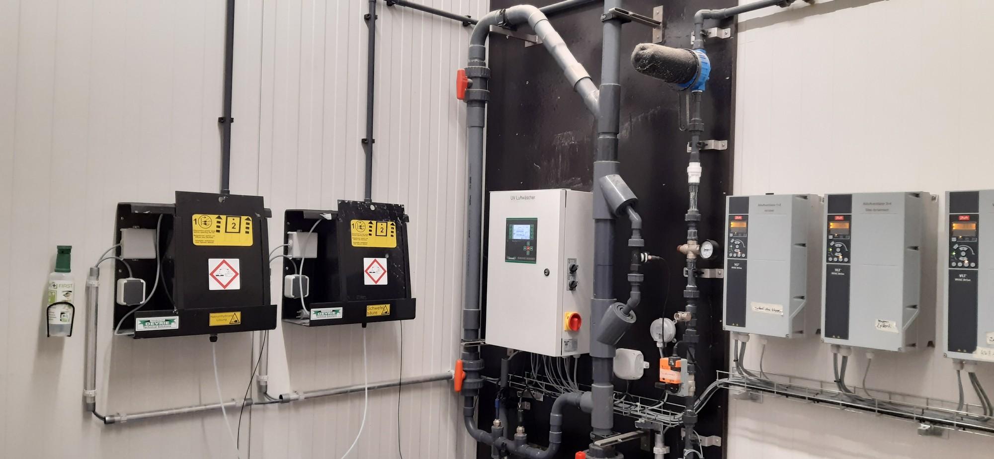 Damit läuft die Anlage immer im optimalen Bereich und der Wasserverbrauch wird optimiert. Falls gewünscht kann eine Steuerung für Luftwäscher und Lüftung verwendet werden.