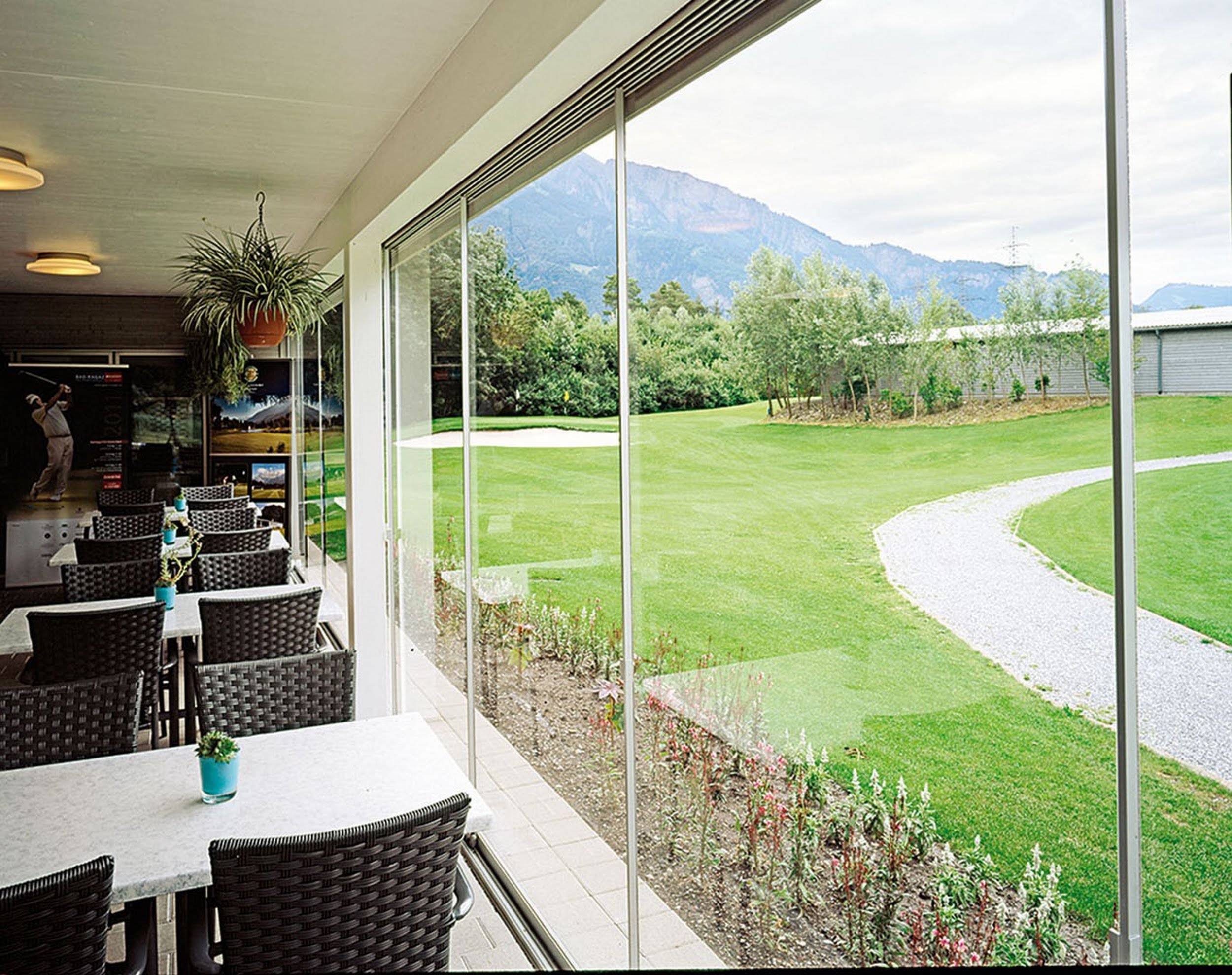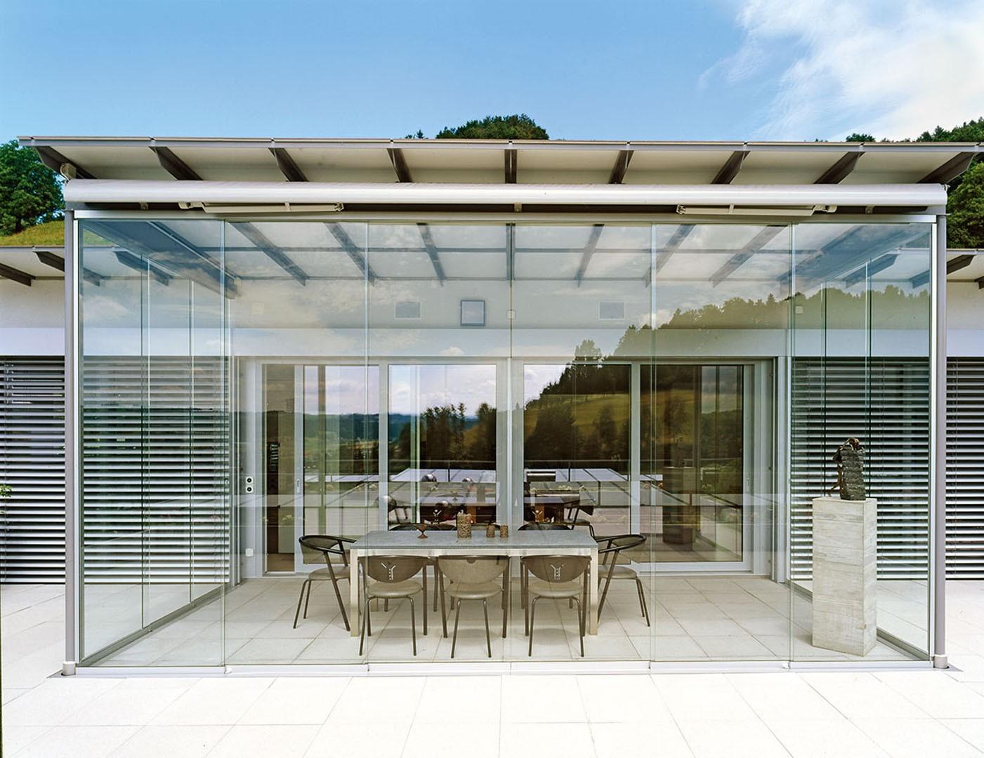 Die Flügel sind parallel verschiebbar und können auf vorgegebenen Bahnen hin und her geschoben werden. Bei maximaler Öffnung werden die Schiebeflügel parallel zur Laufschiene hintereinander aufgereiht. Bei geschlossener Anlage überlappen sich die Schiebeflügel vertikal, wobei der Spalt zwischen der Überlappung eine natürliche Belüftung gewährleistet. Die Parallel-Schiebe-Systeme können auch als Raumteiler eingesetzt werden. L- oder U-förmigen Anlagen werden formschön in Gehrung ausgeführt. Ausführung möglich mit Verschlussriegel oder mit Schliesszylinder.