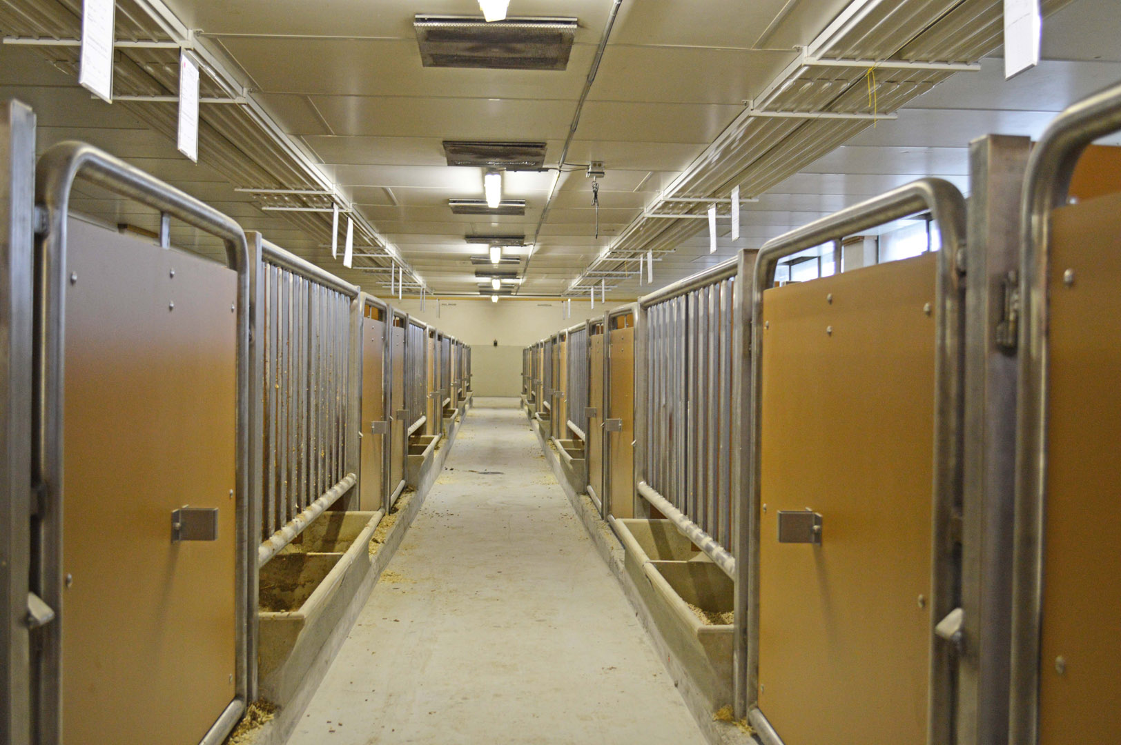 Leistungen: Planung, komplette Stalleinrichtung, Betonroste, Futtertröge, Schiebetüren, Wasserinstallation, Beschäftigungseinrichtung