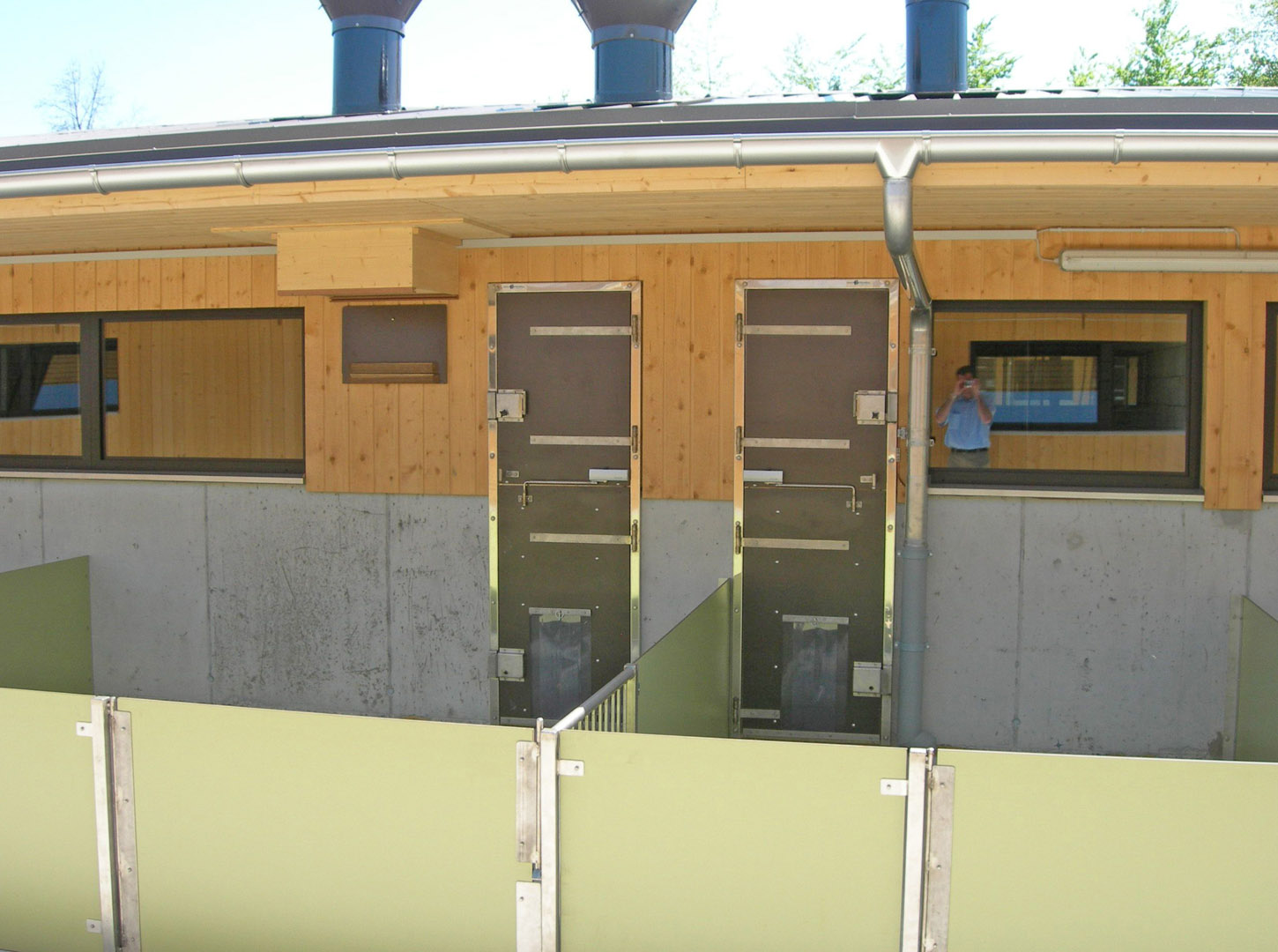 Leistungen: komplette Stalleinrichtung, Roste, Tränkeinstallation, Auslauftüren, Fenster und Türen