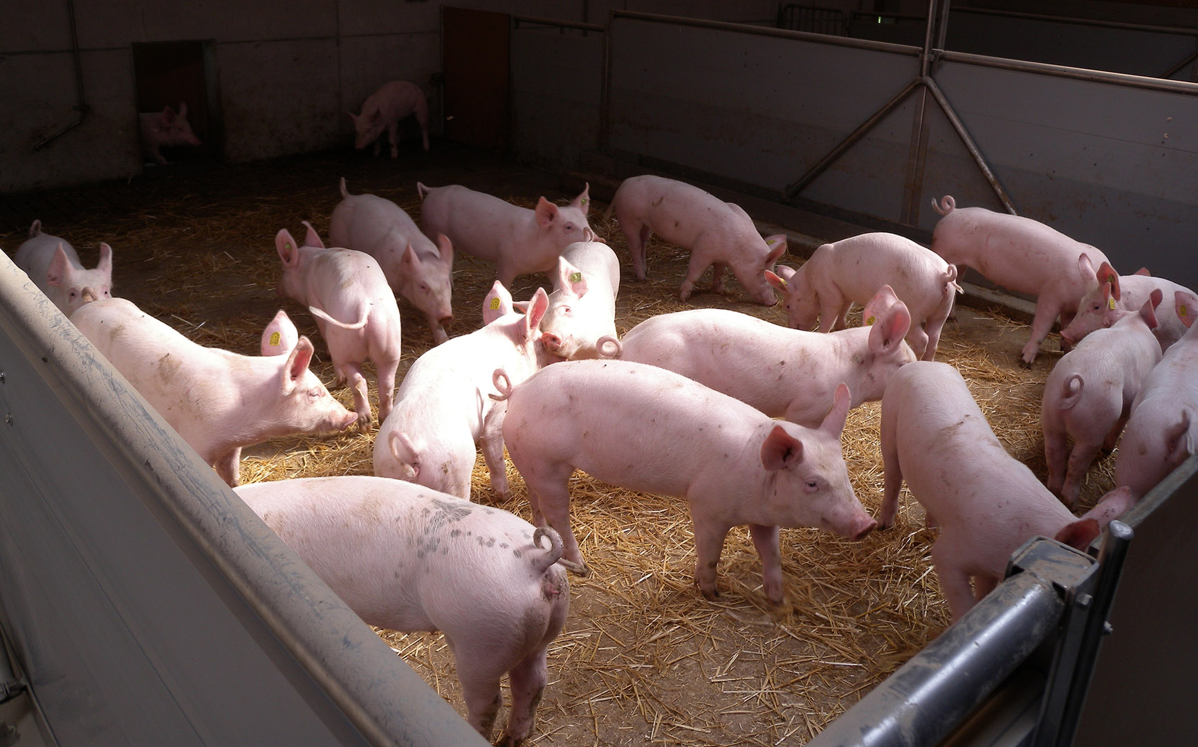 Leistungen: Planung, Stalleinrichtungen, Lüftungsanlage inkl. Luftwäscher, Türen, Betonroste, Beschattung, Ferkelnester