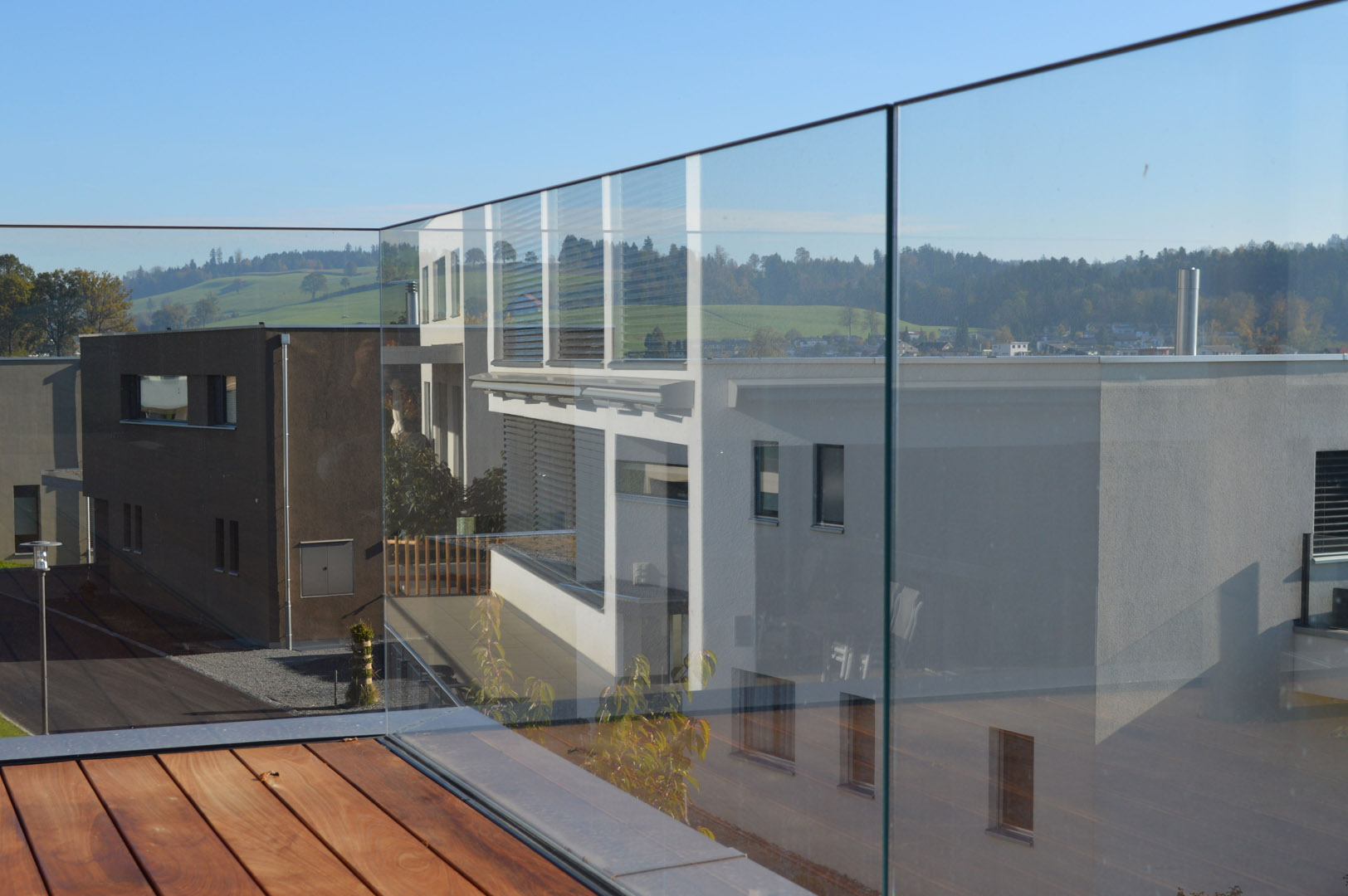 Leistung: Ganzglasgeländer im Innen – und Aussenbereich, Haupteingang mit Vollblechtüre.