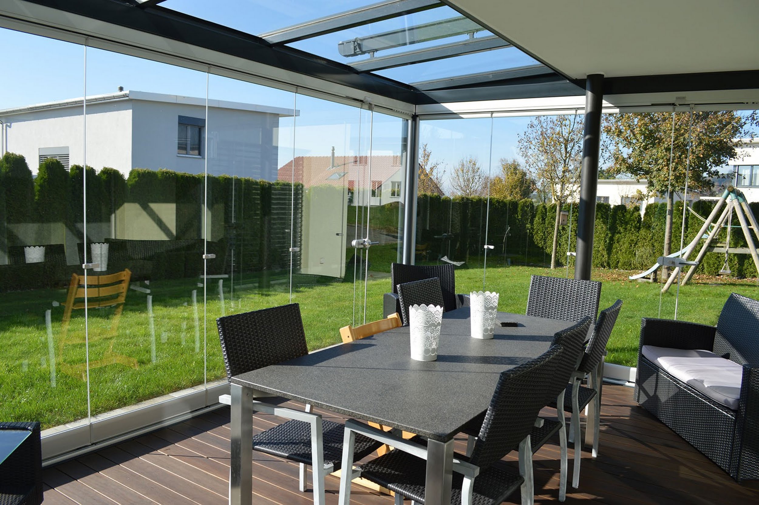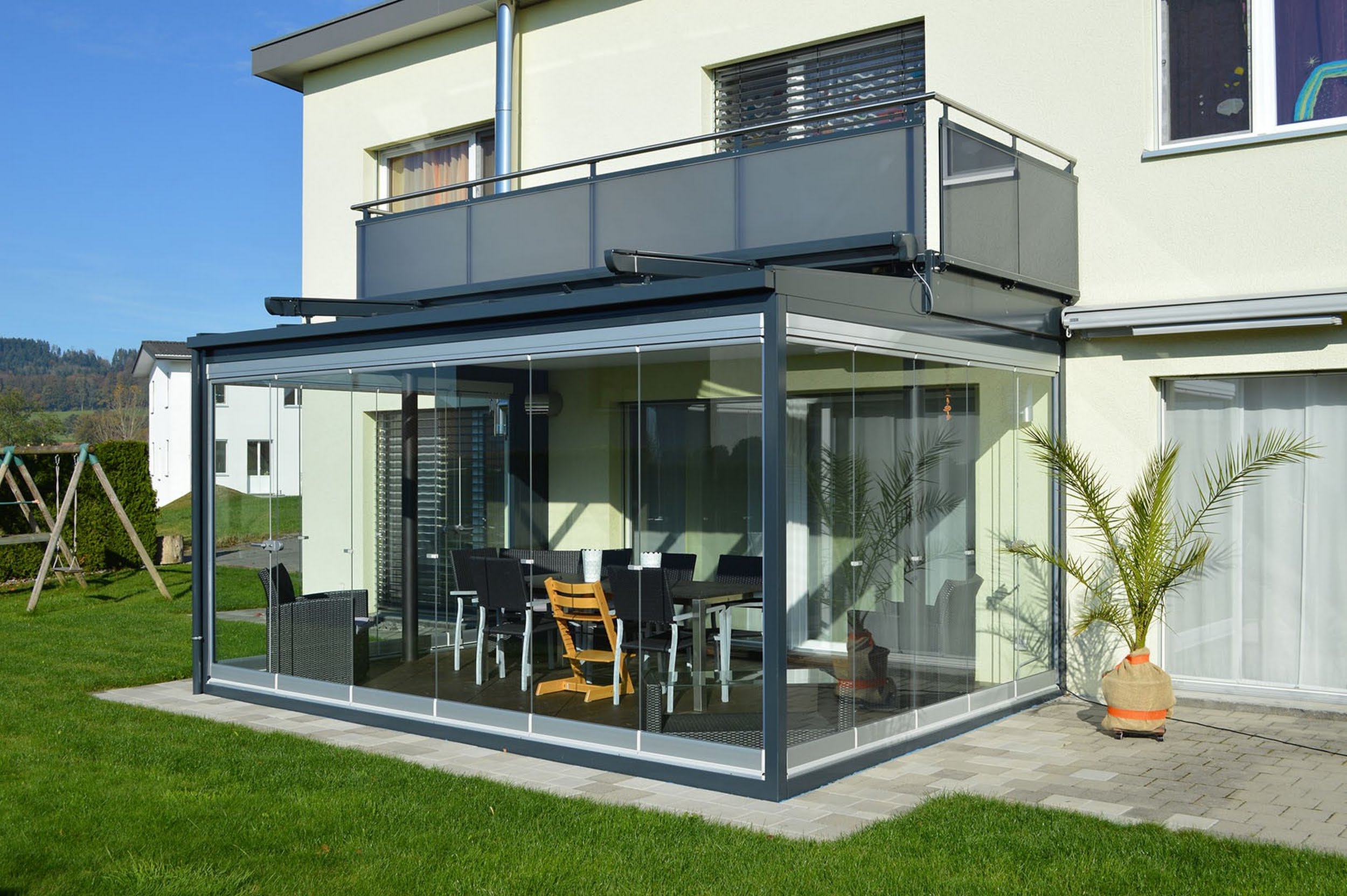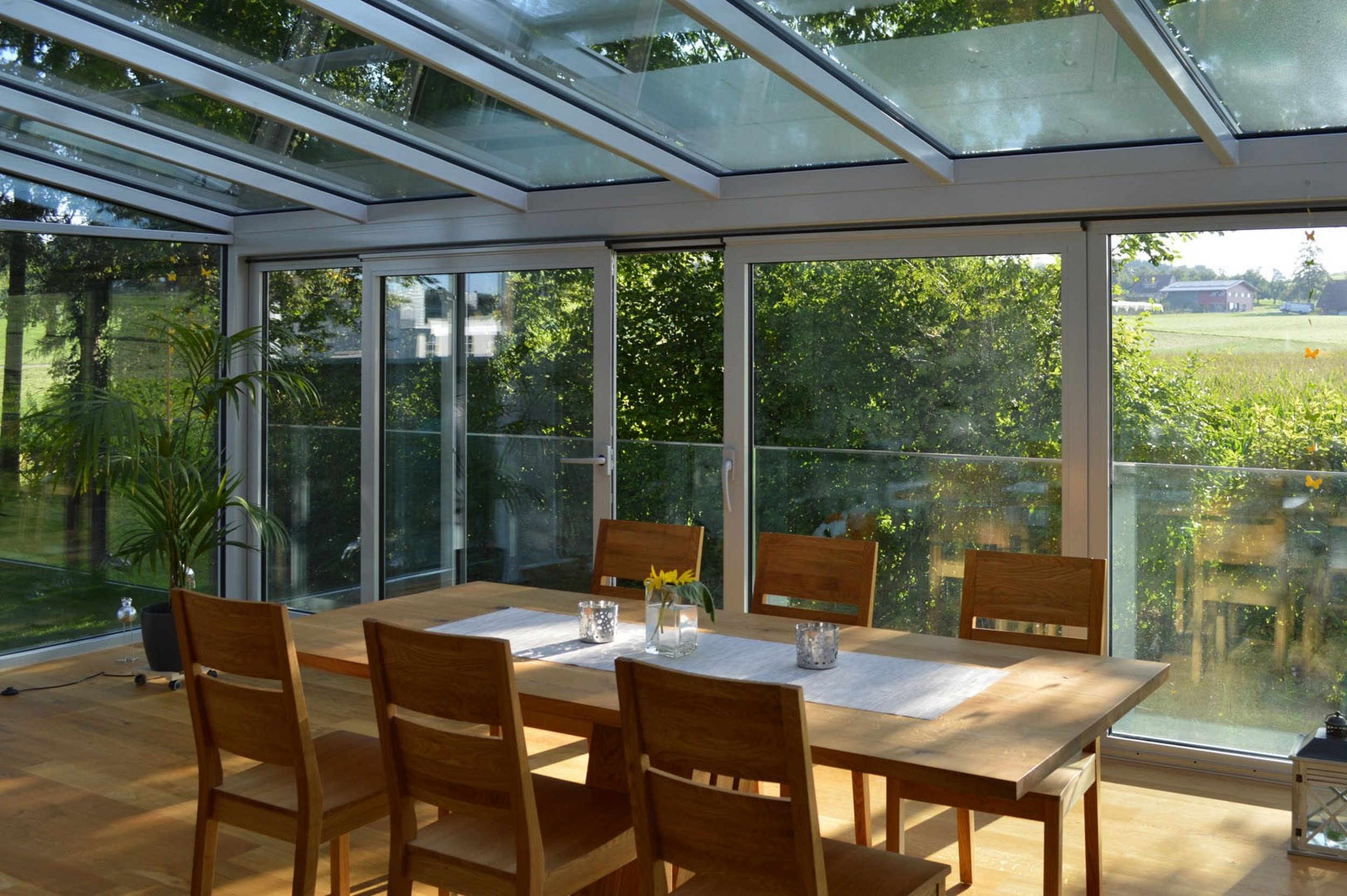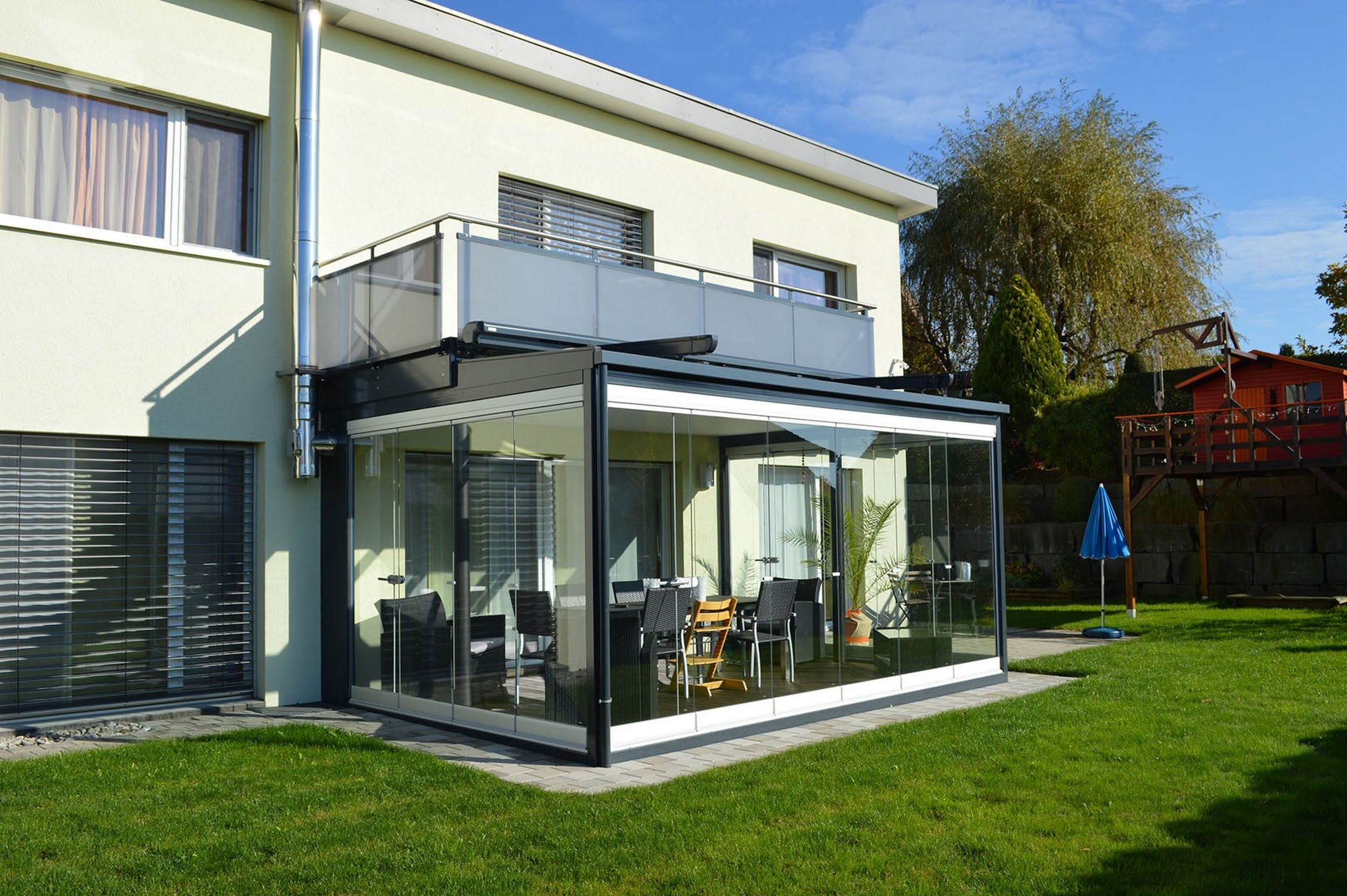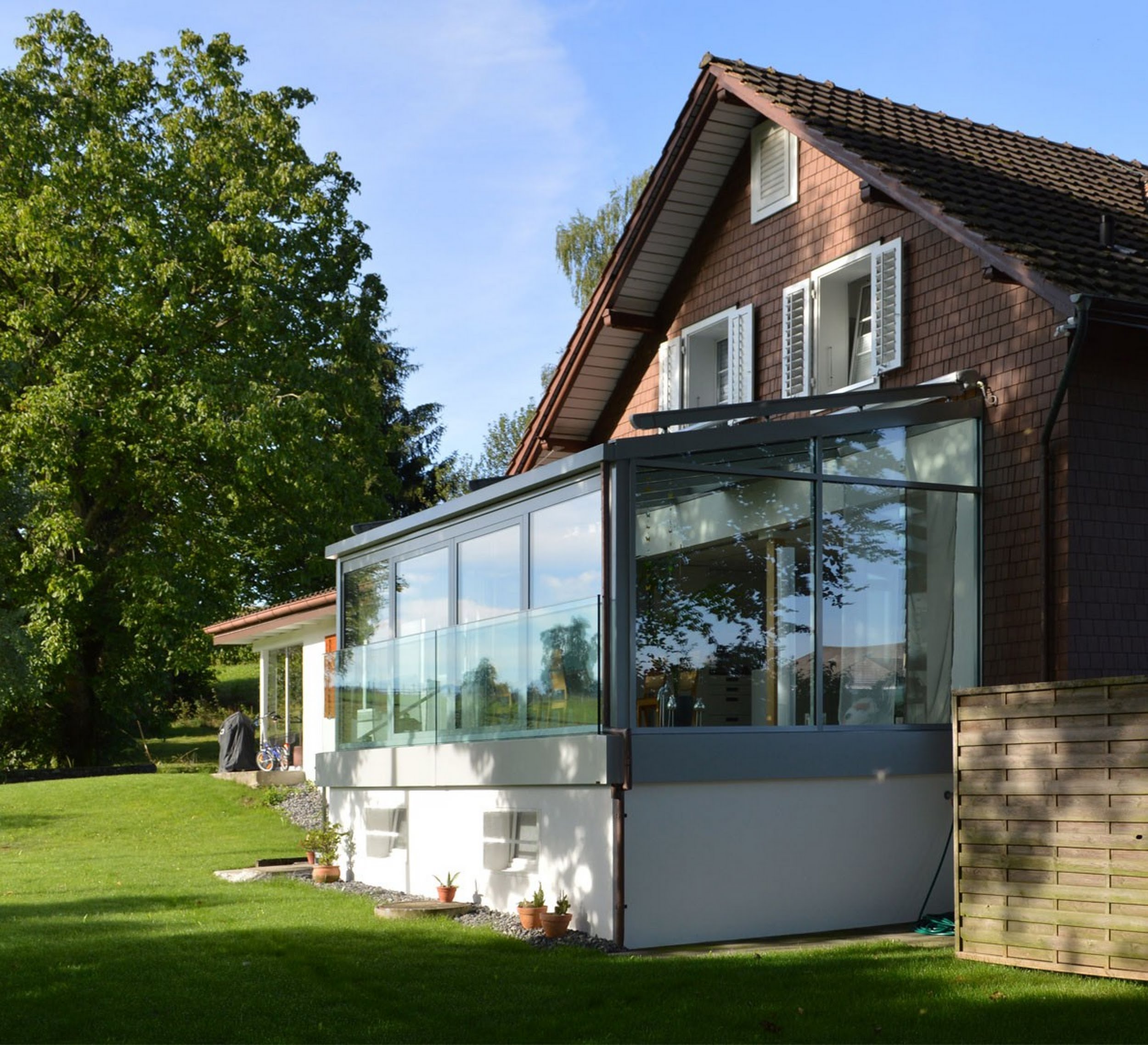 Ein Wintergarten ist ein unisolierter, unbeheizter Raum, wogegen man bei isolierten und beheizten Wohnräumen von einer Wohnraumerweiterung spricht. Beide Ausführungen benötigen eine Baubewilligung, wobei bei der Wohnraumerweiterung das Verfahren zur Bewilligung meist aufwändiger ist. Für die Konstruktion verarbeiten wir unsere bewährten, isolierten oder unisolierten Profilsysteme in Aluminium oder Stahl. Die Gestaltung ist sehr individuell, frei nach den Ideen unserer Kunden.